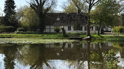 Skørpinge har med sin tætte beplantning, de store gårde og det store gadekær en særlig atmosfære.